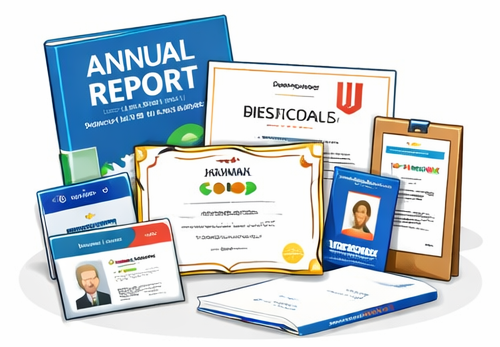 Visiting Cards,, Letterheads & Envelopes, Bills, Invoices & Receipt Books, Brochures, Flyers & Pamphlets, Catalogs & Booklets, Company Profiles, Annual Reports, ID Cards, Certificates,